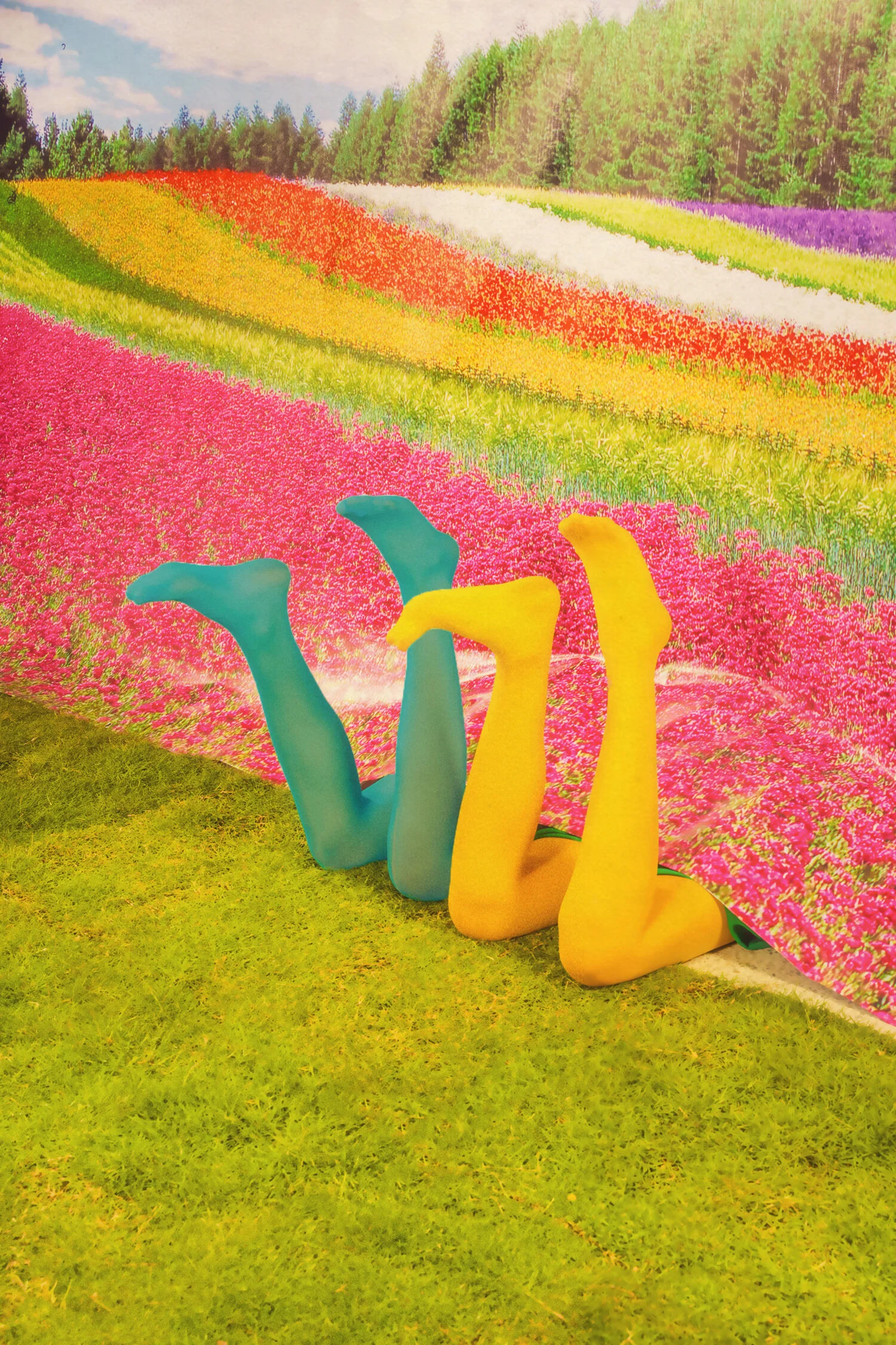 His images are filled with bright color palettes; a world of Teletubbies first comes to mind as his work also captures the innocence of a child having fun with his/her friends. Nevertheless, he adds a satirical edge to his work as it is almost a parody of old magazines or posters we found in beauty salons in Thailand from the 90s. His work captures the feeling of looking back in time with nostalgia teary eyes. “The process is so much fun having to go to back to a friend’s house and go through old photos together or to interview my mom and people from the nursery home made me very happy”
